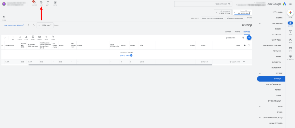 אחר שאתם נמצאים בתוך חשבון ה-Google Ads שלכם:
